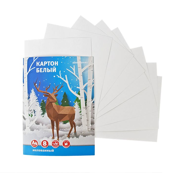 Картон белый 8 листов, мелованный А4 200х279 мм 210 г/м2