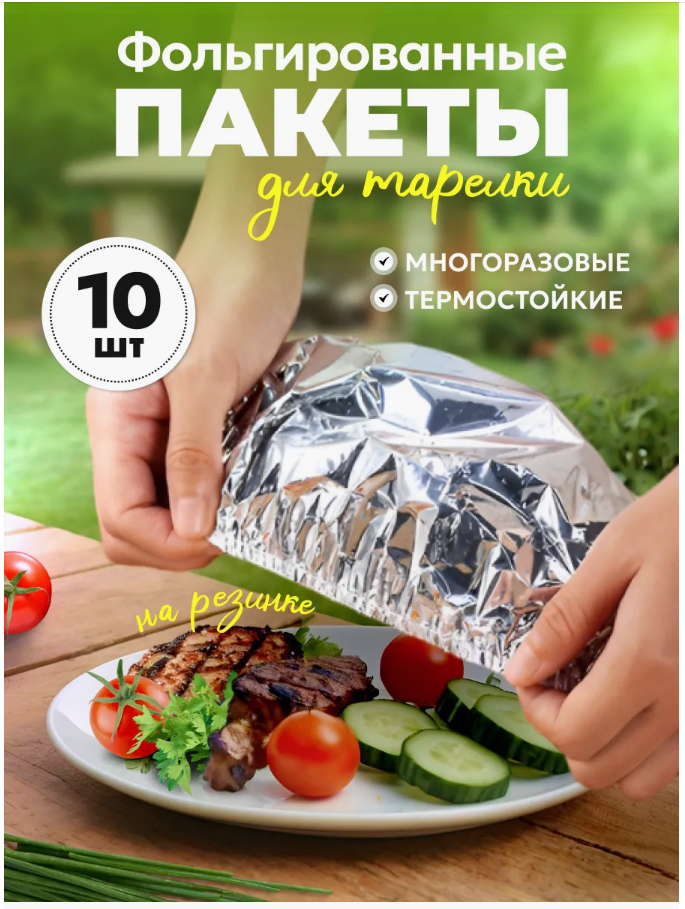 Фольгированные пакеты для тарелки на резинке многоразовые и термостойкие – незаменимый помощник для пикников, поездок на дачу и хранения еды.