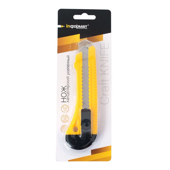 Нож канцелярский 18 мм, усиленный, с механической фиксацией и металлическими направляющими INFORMAT