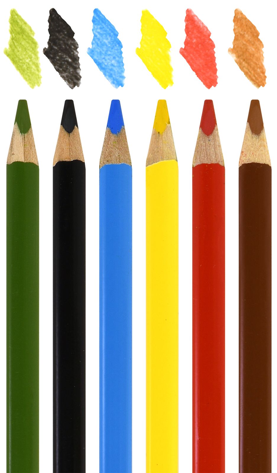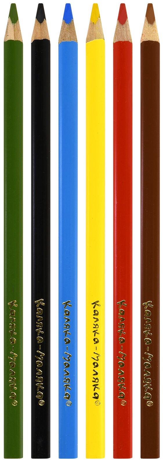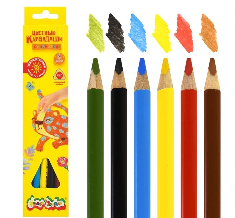 Набор цв. карандашей Премиум 6 цветов, утолщенный супермягкий грифель, трехгранные, дерево Каляка-Маляка