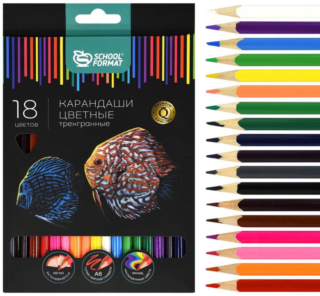 Цветные карандаши , трехгранные, 18 цветов Каляка-Маляка