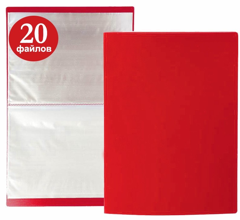 Папка с файлами А4 20 файлов, пластик 500 мкм, красная
