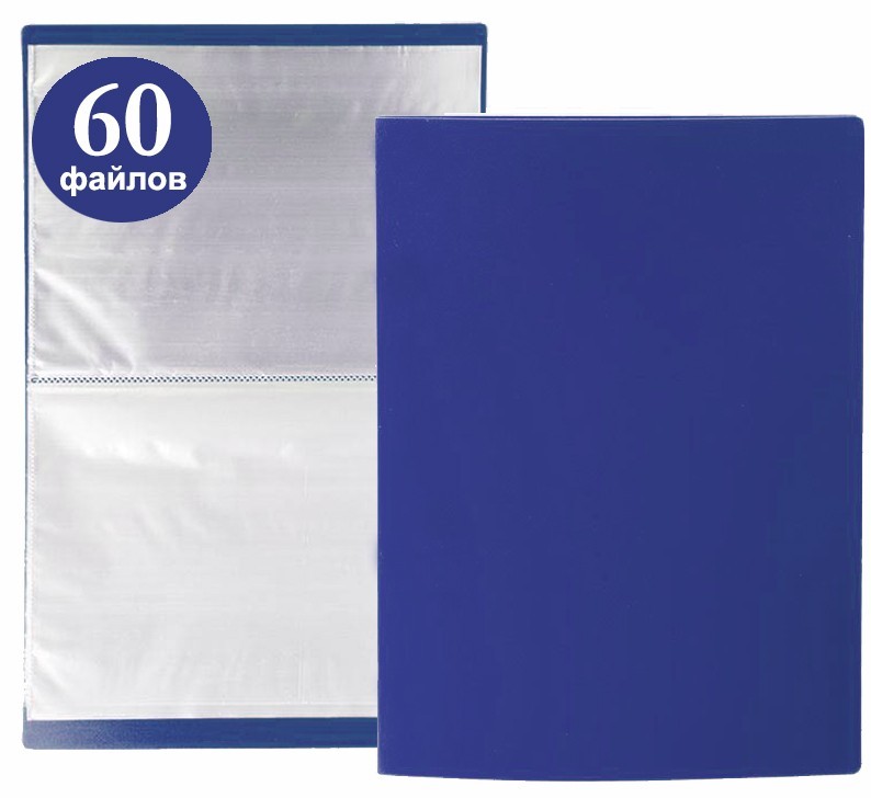 Папка с файлами А4 60 файлов синий пластик 500 мкм