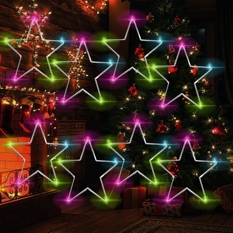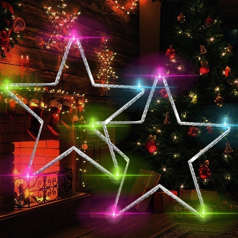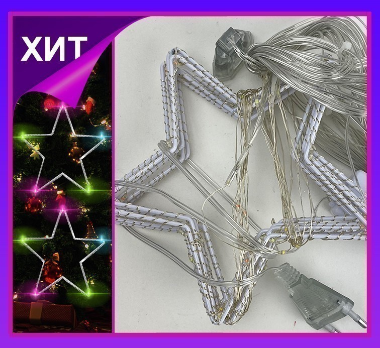 Гирлянда штора Роса -светлячки"Звезда" разноцветное свечение ,7 режимов свечения ,8 фигур, 3х0.75м ,
