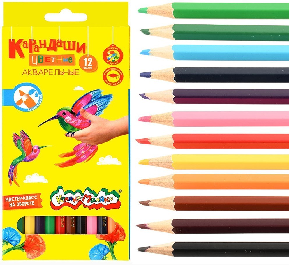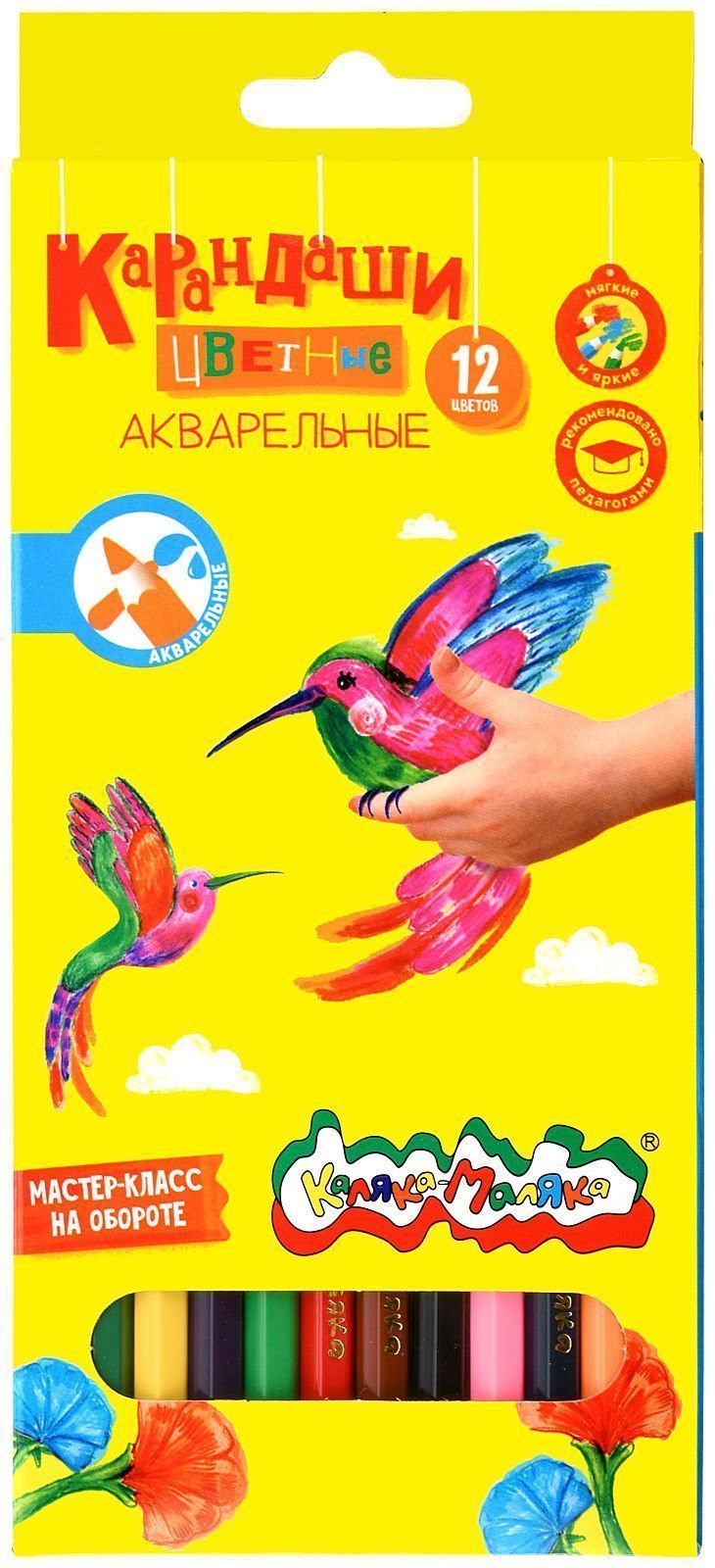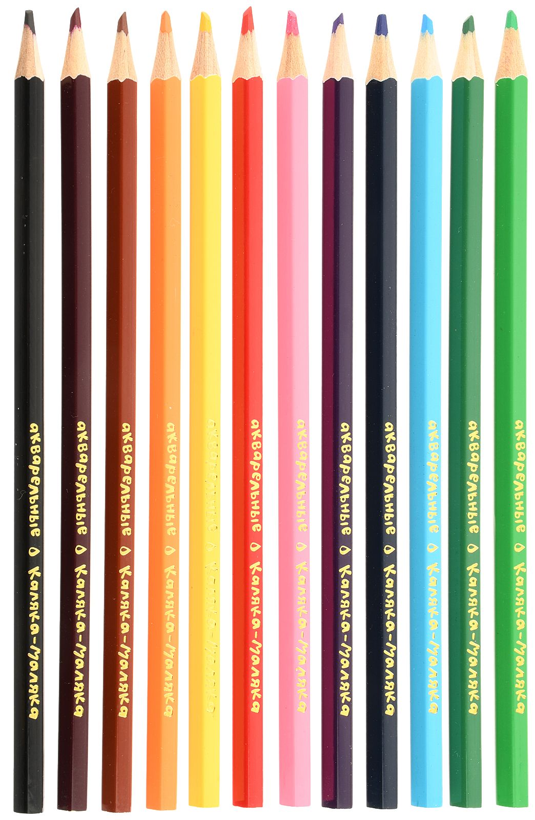 Набор акварельных цветных карандашей 12 цветов, шестигранные, дерево, 3+ Каляка-Маляка