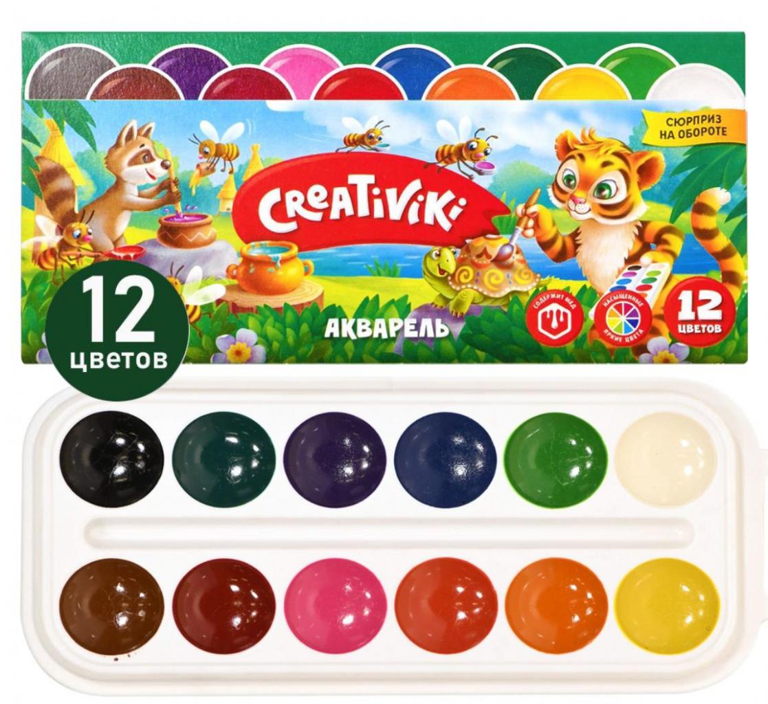 Акварель Creativiki 12 цветов, картонная упаковка, без кисти