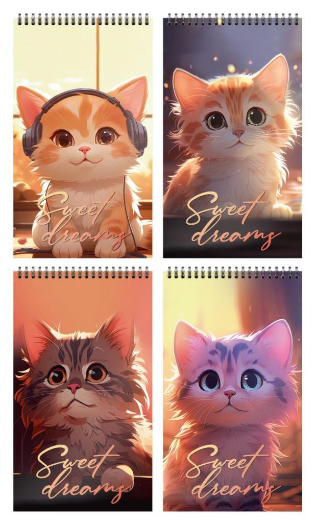 Блокнот А7 40 л. клетка Schoolformat ЛОУ-ФАЙ КОТЫ на гребне, мелованный картон, сплошной Уф-лак