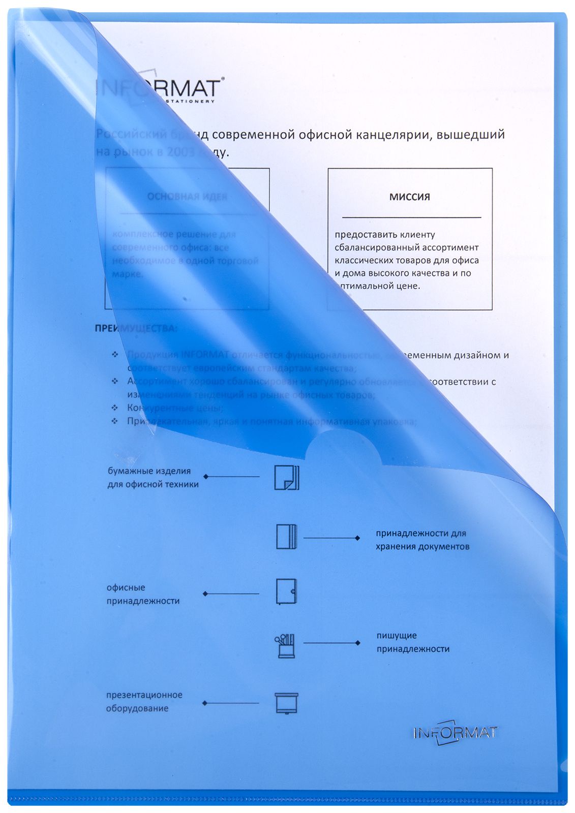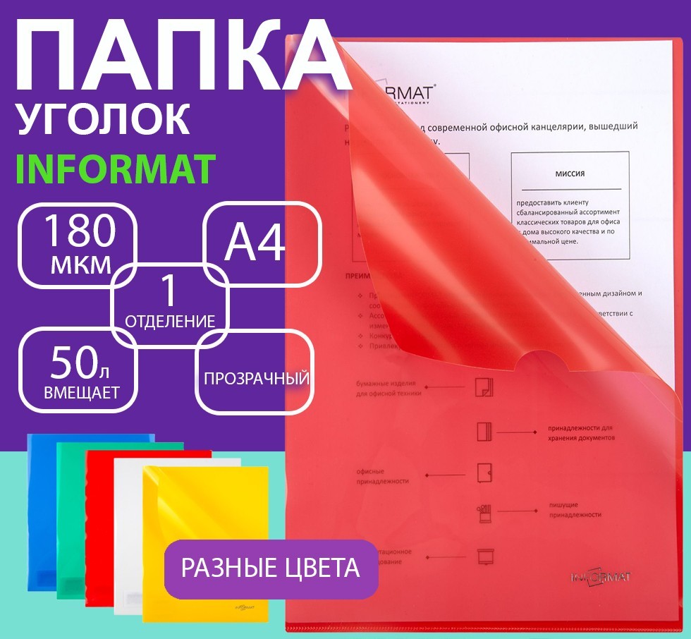 Папка-уголок А4 прозрачый пластик 180 ассорти 1 отделение